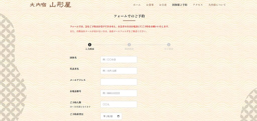 また、以前は電話受付だった団体様予約。フォームでのお申込みもできるようになったことで、忙しくて電話を取れない時もあったお店は予約を受けやすくなり、お客様はいつでも予約をしやすくなりました。